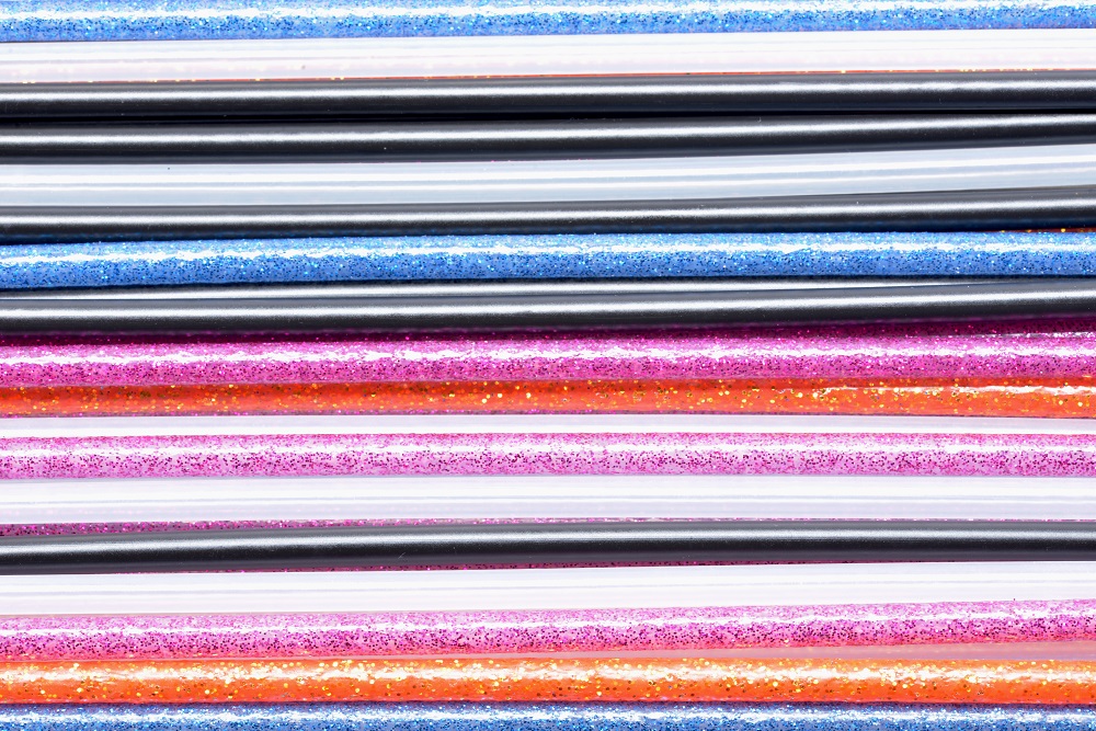 Vi har et bredt udvalg af farver. Fluorescerende farver er meget lyse! Rør med glitter giver dig en cool flue Det kommer i 200 mm stykker. Vi var de første til at introducere plastrør med glitter på markedet Der er 10 stykker i en pakke